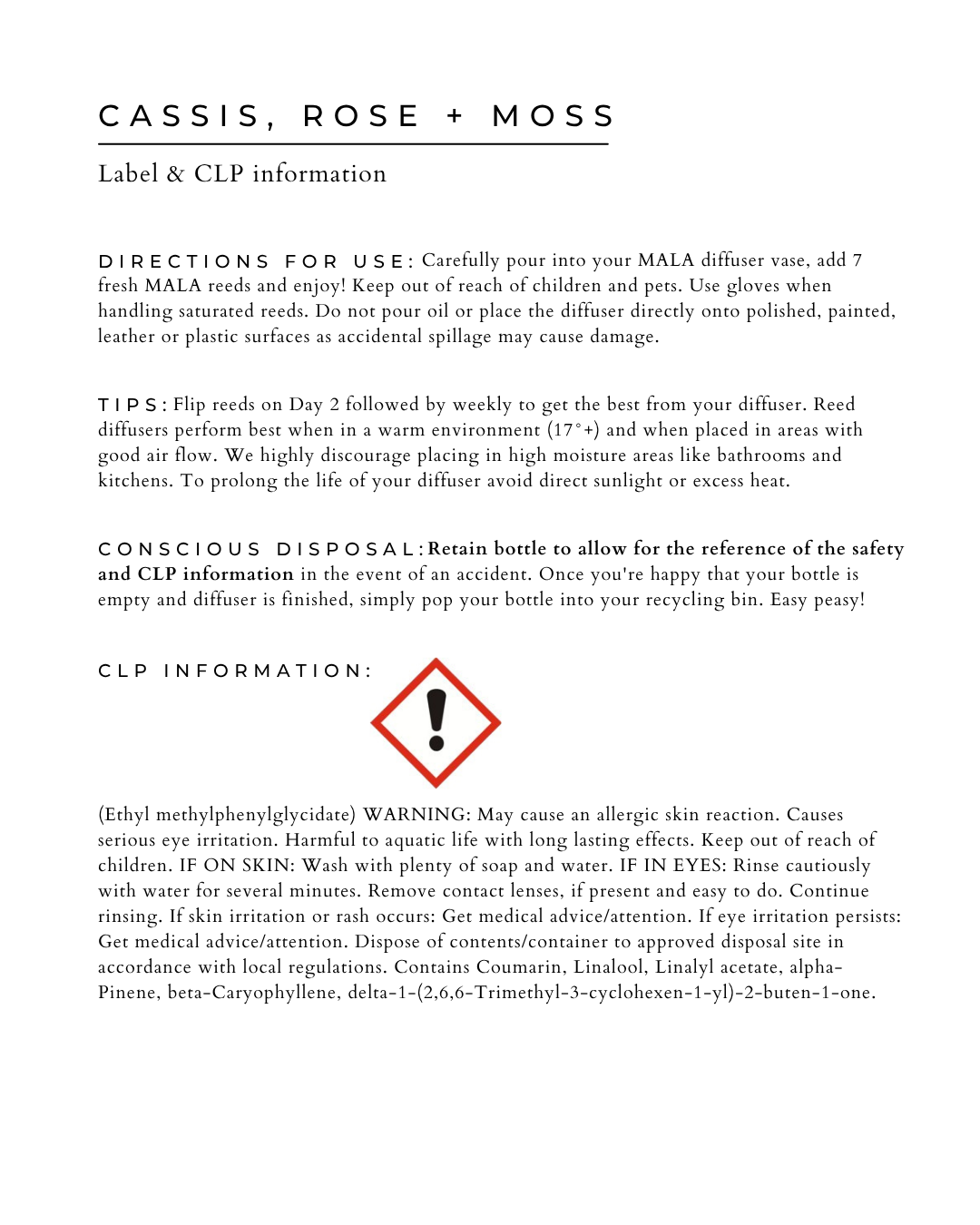 Reed Diffuser Oil - Cassis, Rose + Moss