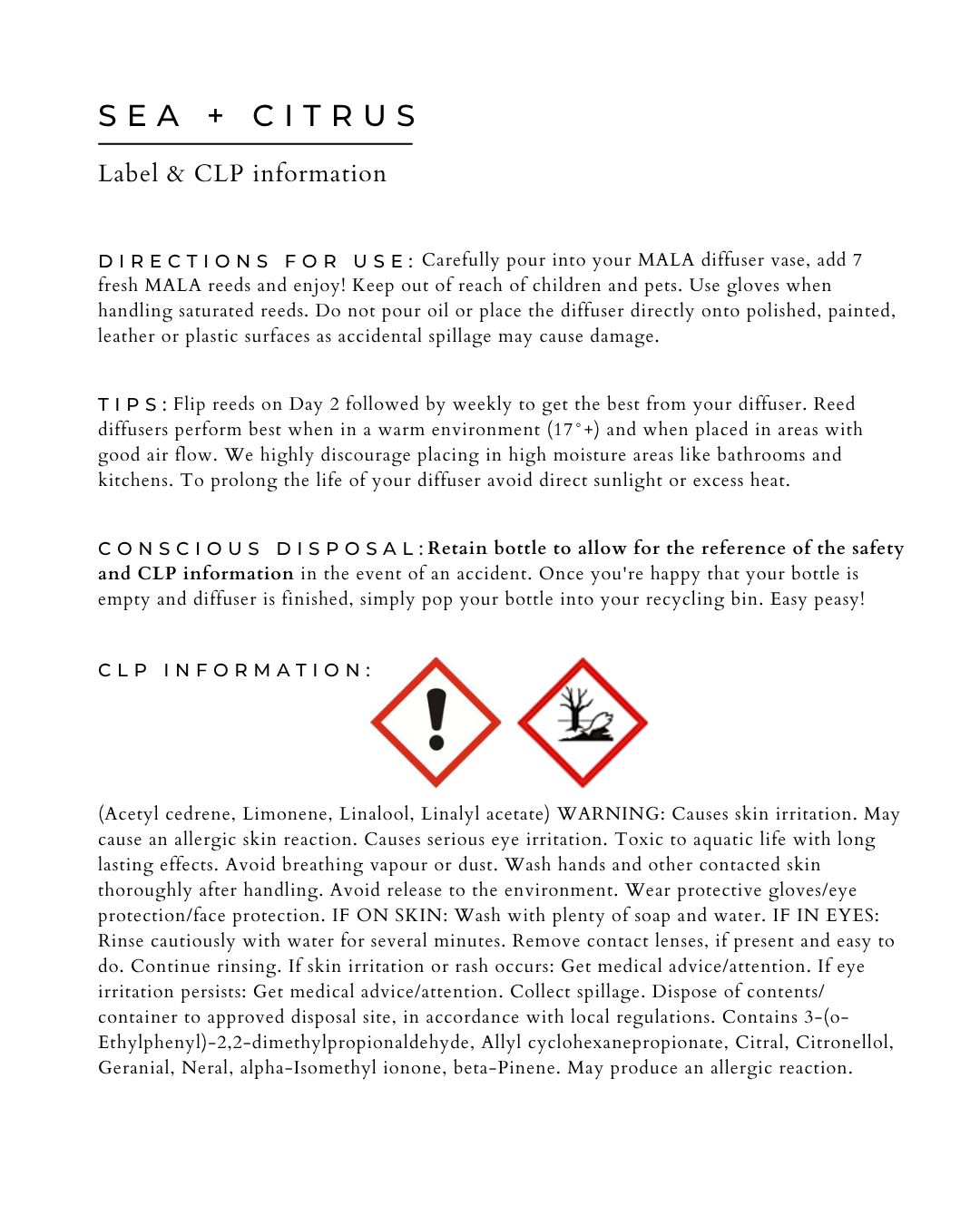 Reed Diffuser Oil - Sea + Citrus