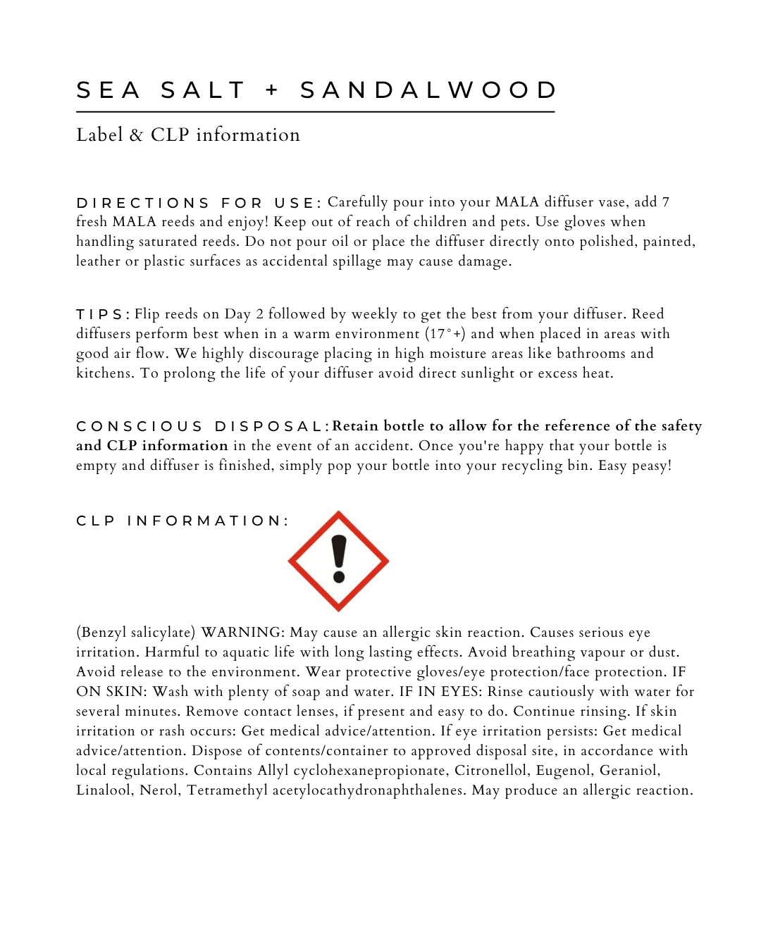 Reed Diffuser Oil - Sea Salt + Sandalwood