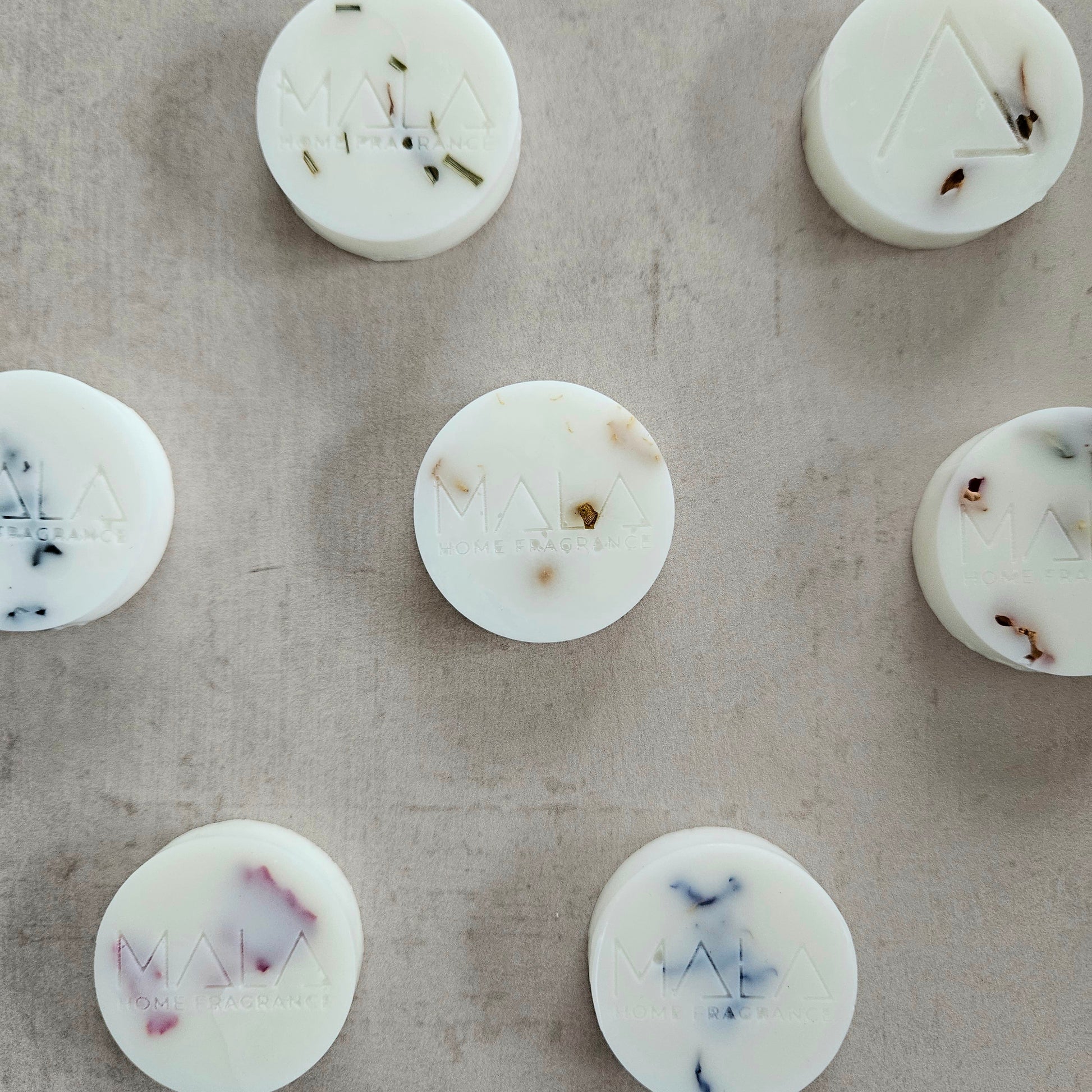 Each signature MALA wax melt disc weighs approximately 10g and provides a minimum of 12 hours of fragrance.